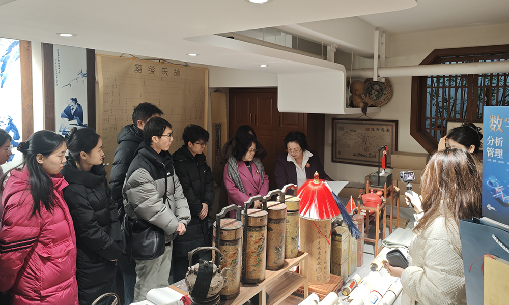 学院一行在胡氏荣茶第八代传人胡萍萍的带领下,先后参观了胡氏荣茶非遗展示中心、产教融合基地及公司总部。胡萍萍董事长结合实物与影像资料,生动讲述了胡氏家族自清代起深耕制茶行业、作为清代贡茶的历史渊源,以及独特非遗制茶技艺的传承与创新历程。让师生们对“艰苦奋斗、开拓进取、诚实守信”的晋商精神有了更具象的认知。在产教融合基地,师生们重点关注了茶文化与中医药文化的交融点,深入了解荣茶在选材、发酵等环节中蕴含的养生理念,现场观摩了古法制茶流程,并就晋商万里茶道文化、非遗技艺保护、中医药与茶文化融合发展及产学研融合等议题展开深入交流。胡萍萍表示,希望与傅山学院在学生实践、课题研究、中医药与茶文化推广等方面加强合作,共同为晋商茶文化的传承注入新活力。
