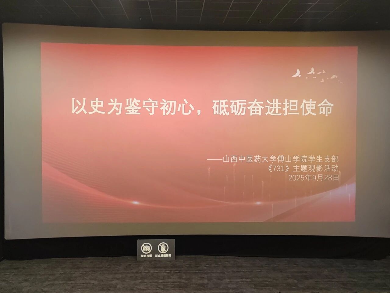 为深刻铭记历史、缅怀革命先烈,进一步强化学生党员的爱国情怀与责任担当,9月28日下午,傅山学院学生第一、第二党支部组织学生党员及入党积极分子开展《731》红色观影主题党日活动,通过光影载体回溯历史真相,让红色教育直抵人心。此次活动参与师生共计36人。