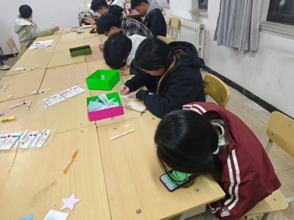 同学们执笔落字,将近期学习生活中的困惑焦虑、压力烦恼,或是成长收获、点滴喜悦,一一认真记录。随后以匿名形式投入特制的“情绪盲盒”,在书写与投递间,完成了一场与自我的深度心灵对话。