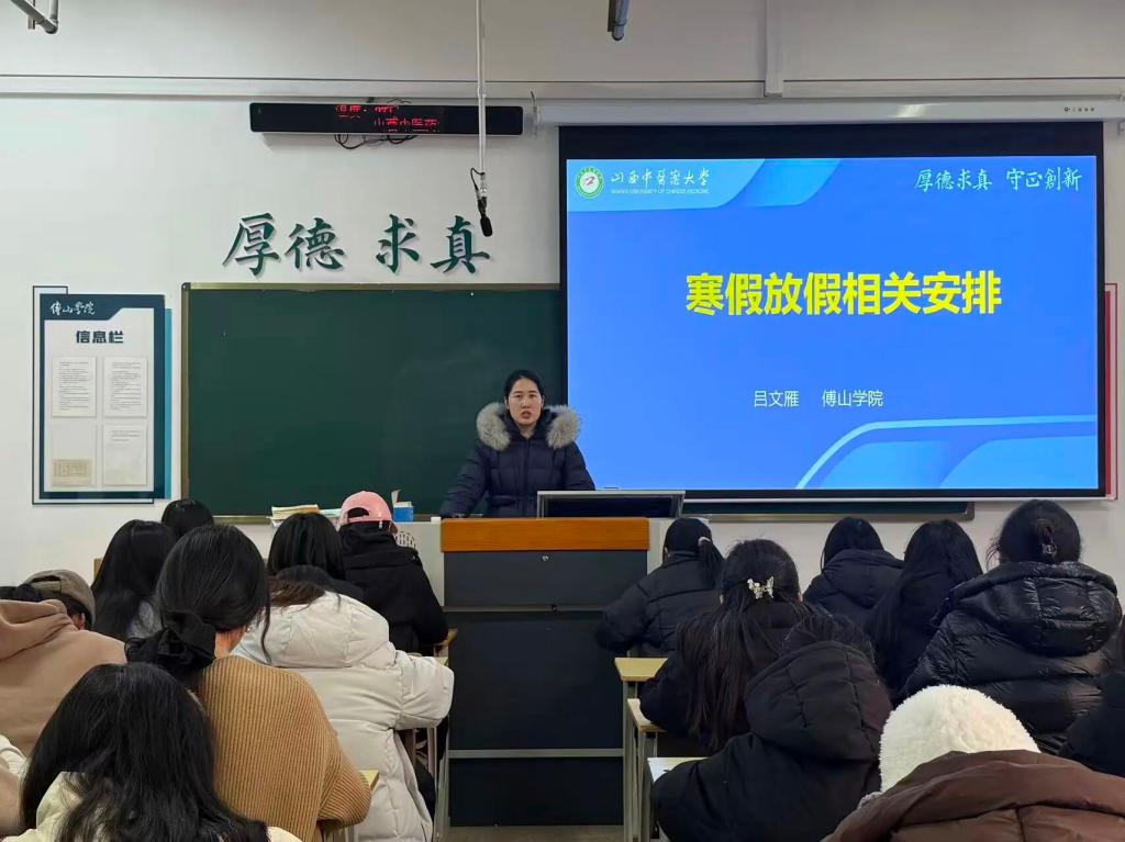为筑牢学生假期安全防线,保障学生度过平安充实的寒假,12月30日至1月5日,傅山学院于图文教室组织开展寒假安全教育主题班会。各班辅导员主持会议,全体学生参与学习。